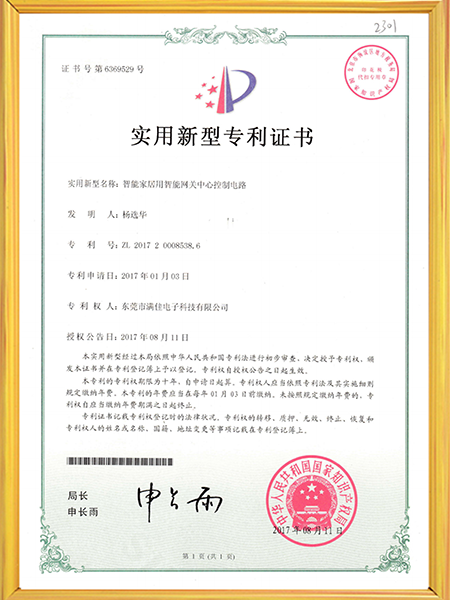 智能网关实用新型专利证书