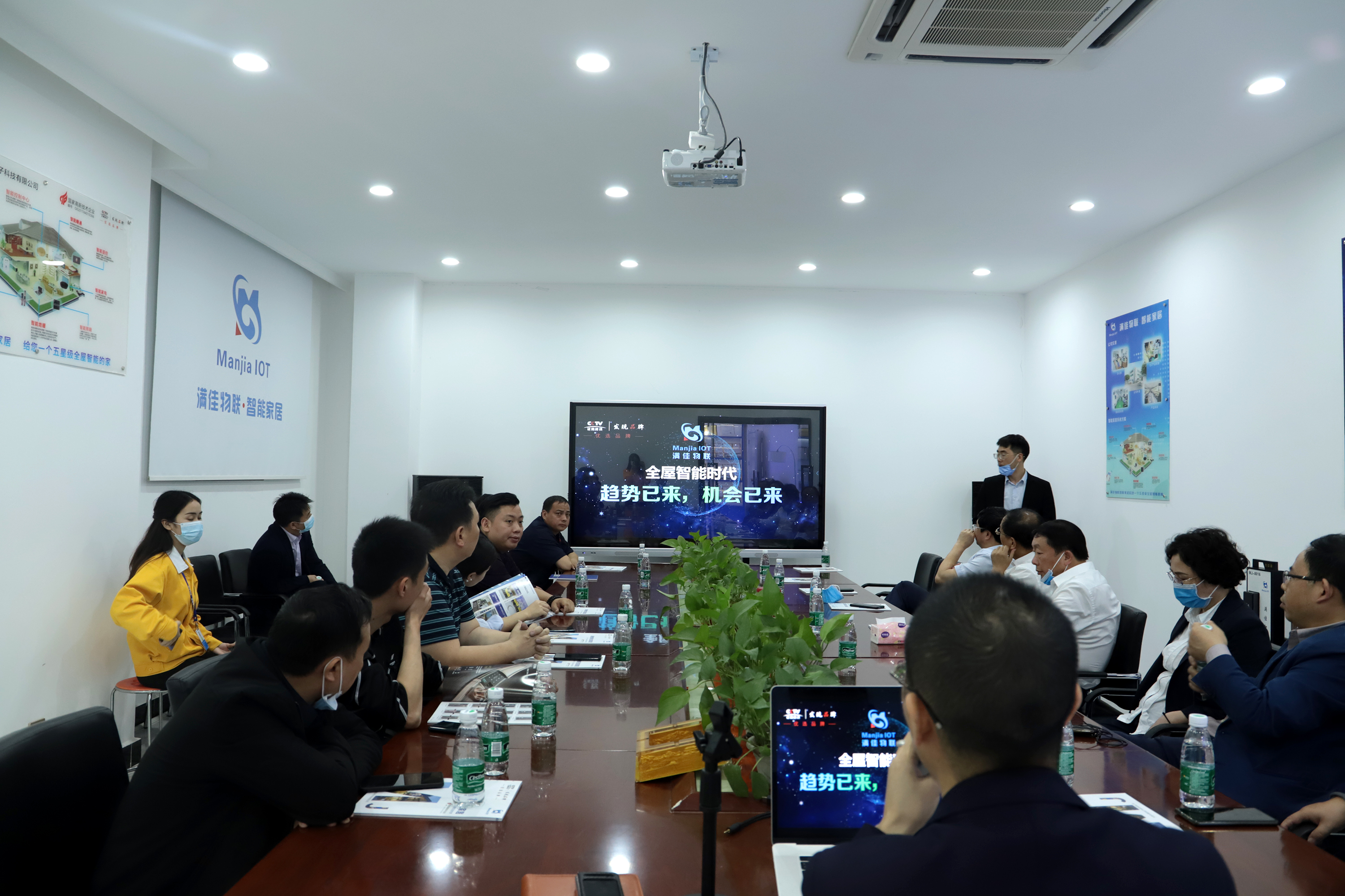 湖南省新化县委朱书记一行等领导早满佳物联总部合影 座谈会上,满佳物联杨总介绍了公司的的基本情况,对满佳物联智能家居发展历程进行了详细了解,满佳物联将充分发挥物联网时代智慧家居品牌优势,在全屋智能供应链整合等方面持续发力,实现全屋家居生态体系构建,在全屋智能领域持续探索,引领行业向智能化、高端化发展。同时,满佳物联近期与上海智央科技成功签约。共同建设中国上海一带一路智慧城市项目,同时联手国内知名品牌一起建设上海智慧城市项目。朱书记对公司实力给予了充分肯定。