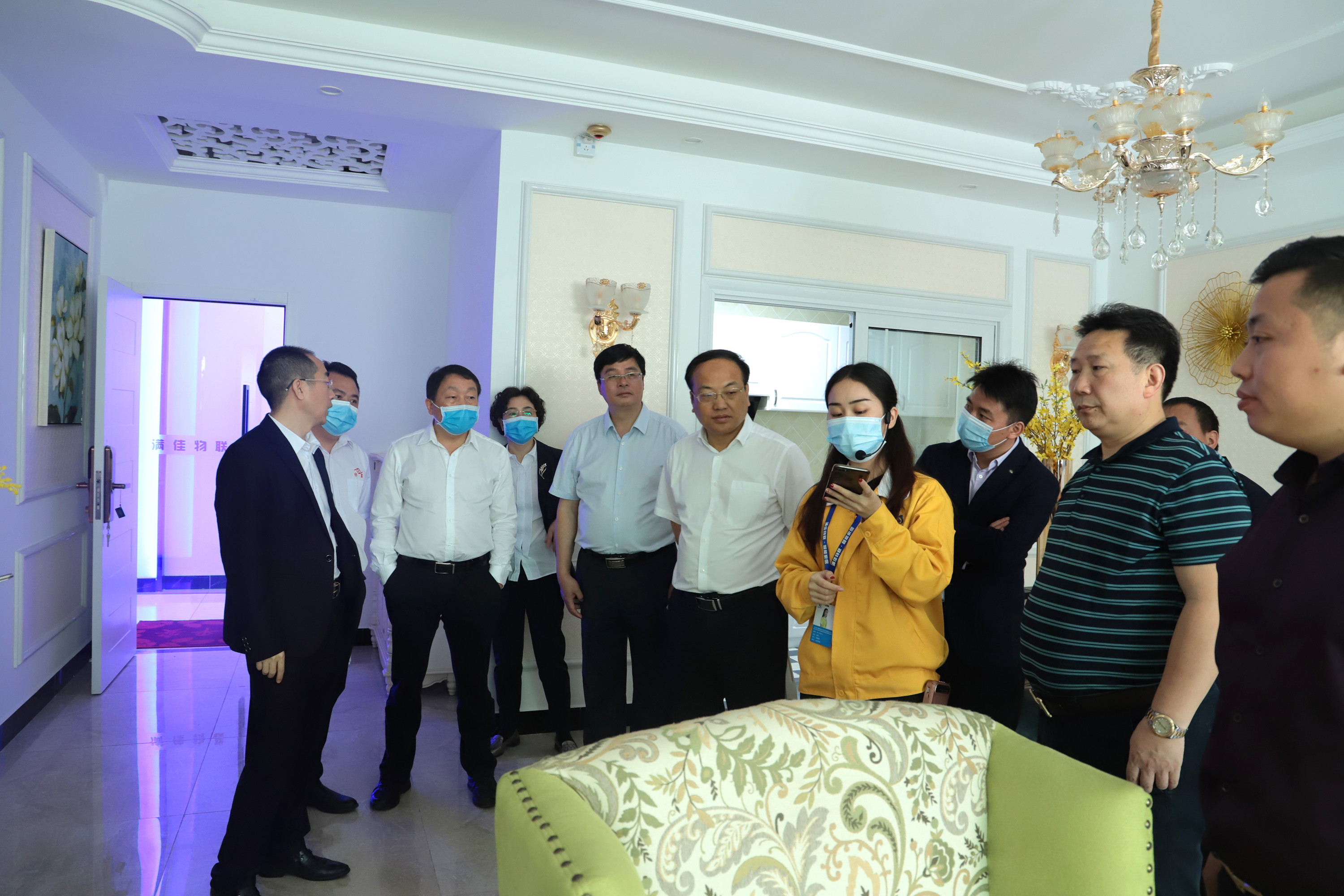 2020年4月25日上午,新化县县委朱前明书记一行领导莅临满佳物联智能家居视察工作。满佳物联董事长杨选华热情接待到访领导,并全程陪同观摩。在县委视察过程中,新化县委朱书记及多位领导,向杨总了解询问了企业的生产经营情况,对企业产品及发展进行深层次的交流!